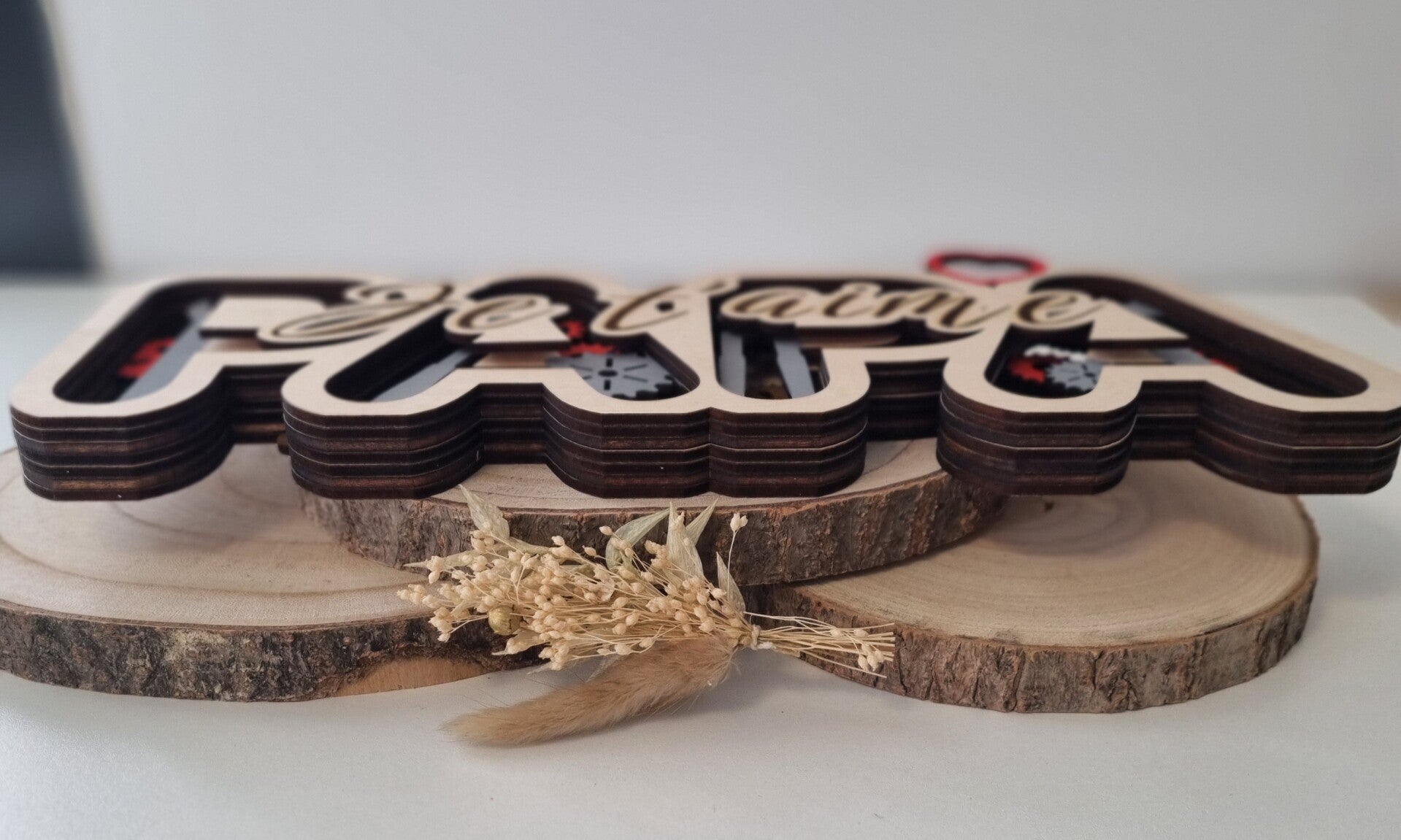 Un joli décor en bois multicouche, gravé avec amour, pour dire à Papa combien il compte.