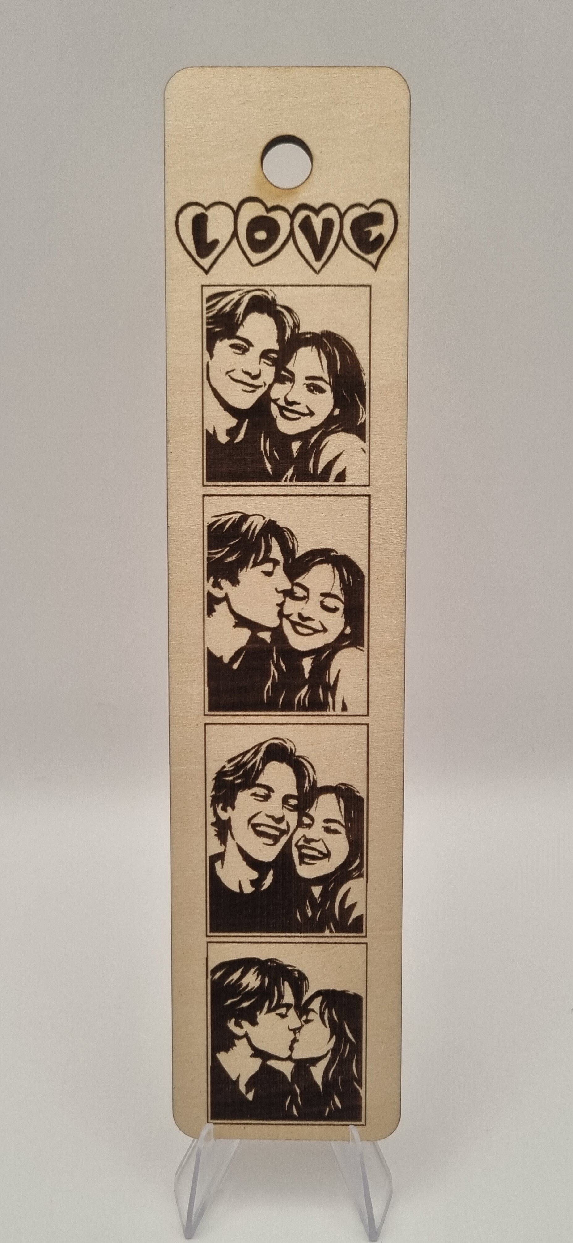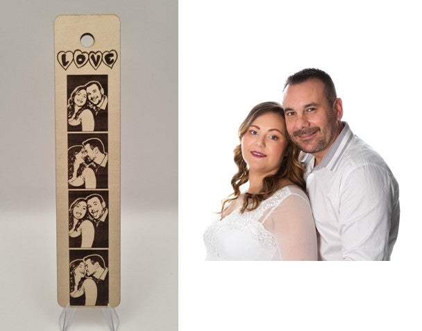 Marque-page photomaton personnalisé en bois – Cadeau couple original