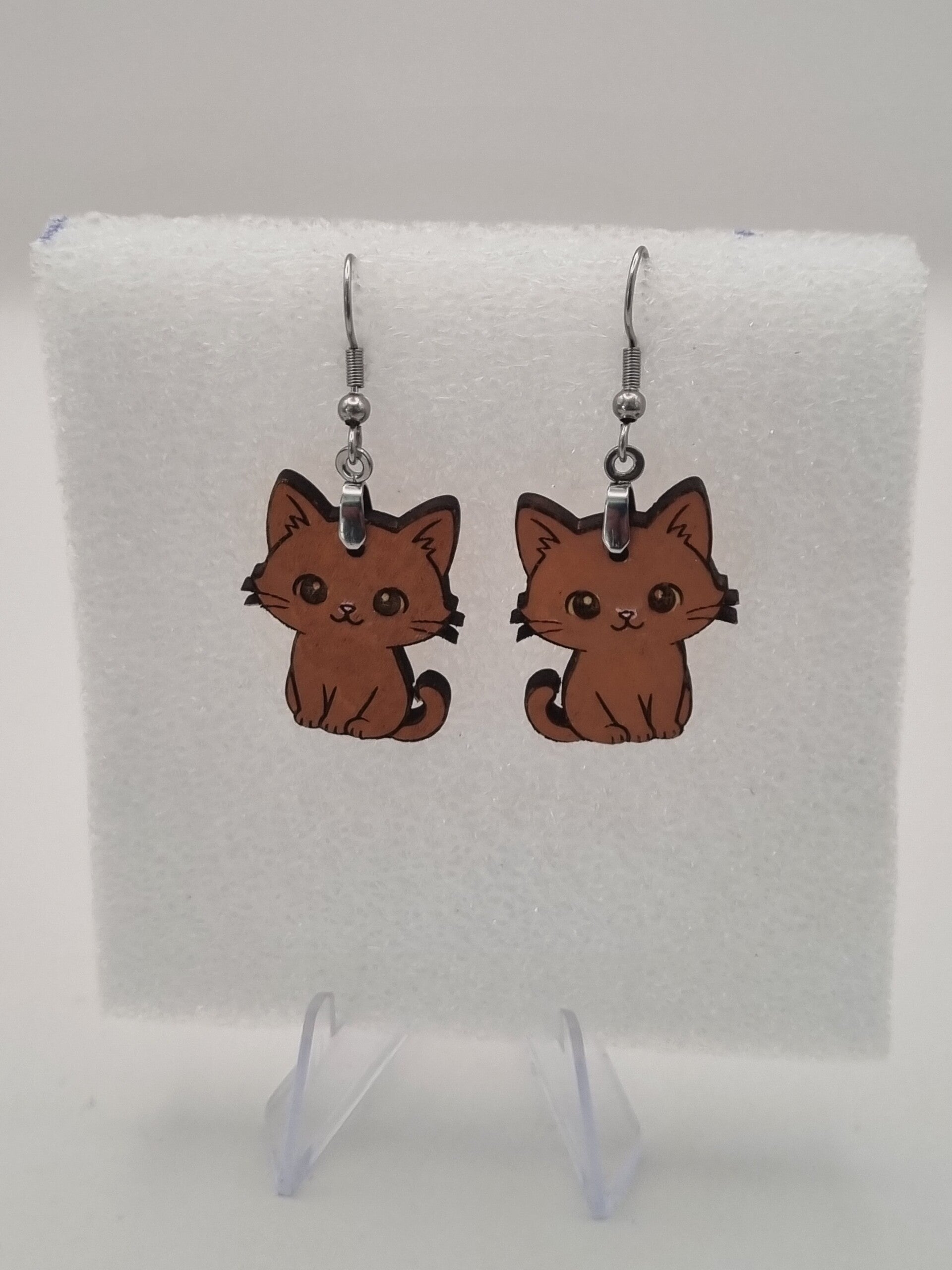 Boucles d’oreilles en bois – Chats adorables