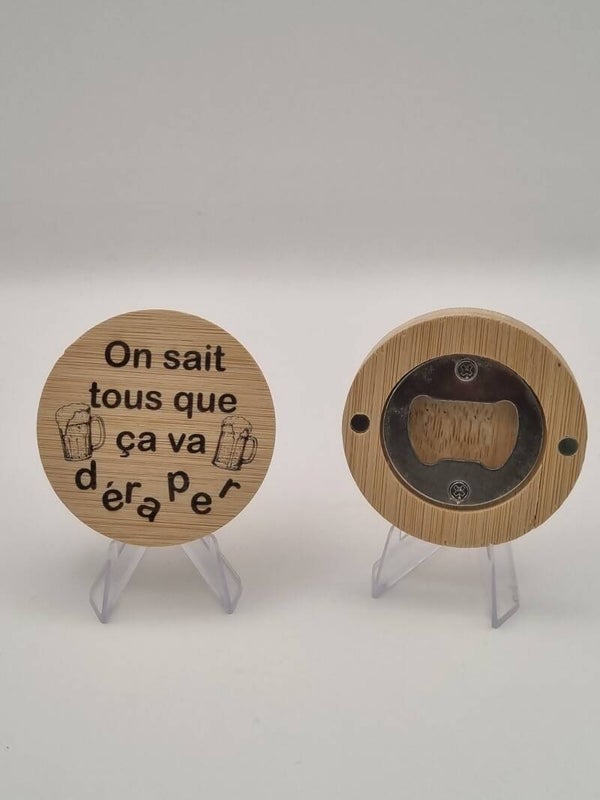Ajoute une touche d’humour et de convivialité à ton intérieur avec ce décapsuleur mural en bois gravé. Chaque modèle présente un message drôle autour de l’apéro et de la bière, accompagné d’une illustration originale.